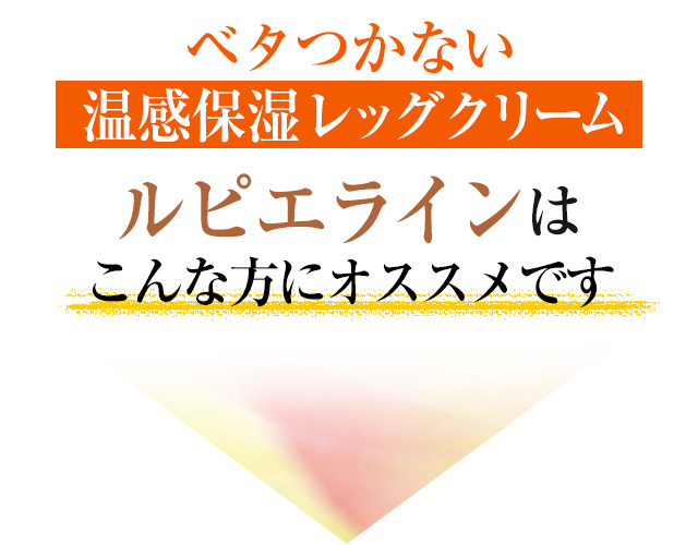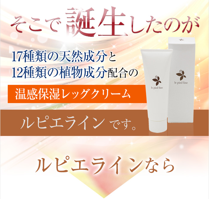 夜、軽くマッサージしながら塗ると寝ている間にリンパ液と血液が循環して翌日もず~っとすっきり快適♪やっとの思いで、今までになかったベタつかない温感保湿レッグクリーム“ルピエライン”の開発に成功!