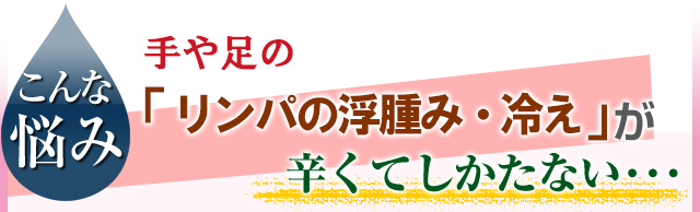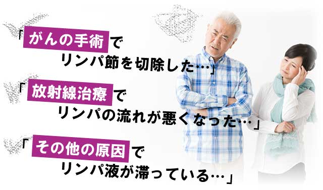 がんの手術などでリンパ節やリンパ管が切除されてしまうと、上肢や下肢に溜まった水分や老廃物が正常に循環することなく滞って「むくみ・冷え」の原因になります。