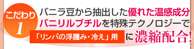 デリケートな「リンパの浮腫み・冷え」の症状に特化、17種類の天然成分と12種類の植物成分をふんだんに配合して温感と保湿効果を徹底追求