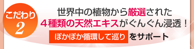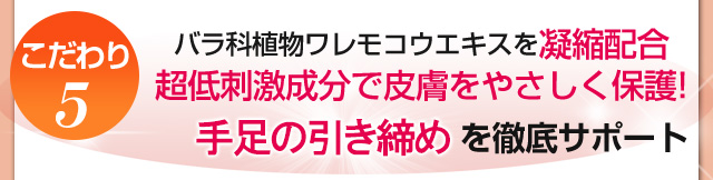 入念に選んだ6つの天然エキスに1つの植物成分を巧妙に配合し、それぞれの成分の特徴が相乗効果を生み出しながら、じんわりと手足に浸透していくように設計されています。手足の気になる悩みにやさしくアプローチして翌朝にスッキリ感・スラット感をもたらします。絶妙なバランスで配合された6+1の成分でこころを快適にします。 ※角層まで。マッサージ効果 |