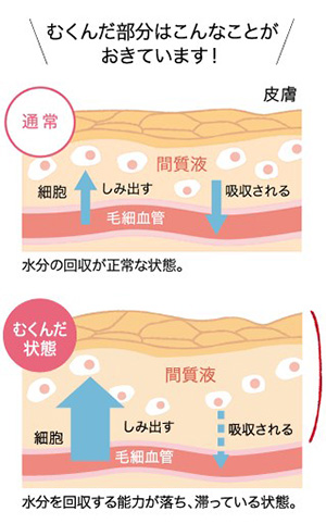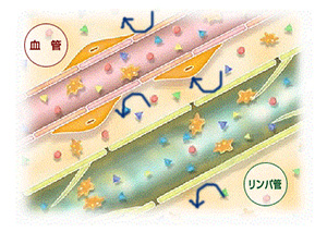放射線治療などによりリンパの流れが悪くなると、水分や老廃物がリンパ管から漏れて細胞のすき間に滞ってしまい「むくみ・冷え」の原因になります。