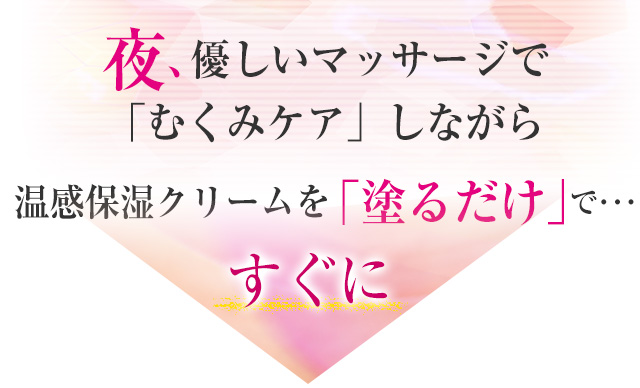 毎日、入浴後にクリームを適量塗って軽くマッサージして、そしてポカポカ気持ち良く就寝する日を重ねていく度に、私の悩みは徐々に落ち着いていきました。しかもクリームを塗っている事で、気持ちもとても楽になり始めていました。