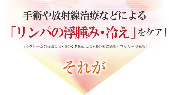 手術・放射線治療・加齢・代謝の低下・ホルモンバランスの乱れなどによる「リンパの浮腫み・冷え」はとても辛い悩みです。でも、それらの悩みを同時に解決できる効果のあるクリームは今までになかった…