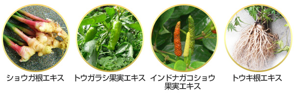 前述のバニリルブチルの温感ととても相性が良い天然エキスです。 ※角層まで。マッサージ効果 |